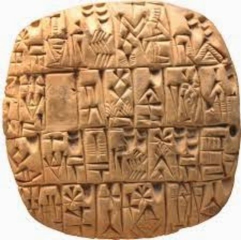 Τα πρώτα γραπτά σημεία γεννήθηκαν από την ανάγκη καταγραφής των αγροτικών προϊόντων για εμπορικές συναλλαγές και χρονολογούνται την 4η χιλιετηρίδα, περίπου το 3.300 π.Χ. Τα σημεία που βρέθηκαν χαραγμένα σε πήλινες πινακίδες, είναι εικονογραφήματα, το καθένα από τα οποία αναπαριστά ζωγραφικά ένα αντικείμενο ή ον.